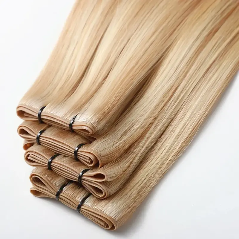 A: 実際、細い髪や薄毛に最適な選択肢です。軽量でフラットなデザインは頭皮の緊張を軽減し、根のかさばりを避けるため、従来の機械や手で結ばれたよこ糸よりも優しいです。専門的な取り付けが重要です。スタイリストは、デリケートな部分を引っ張らないように横糸を均等に分配する必要があります。正しく適用すると、これらのエクステンションは髪を傷めることなくボリュームと長さを追加します。