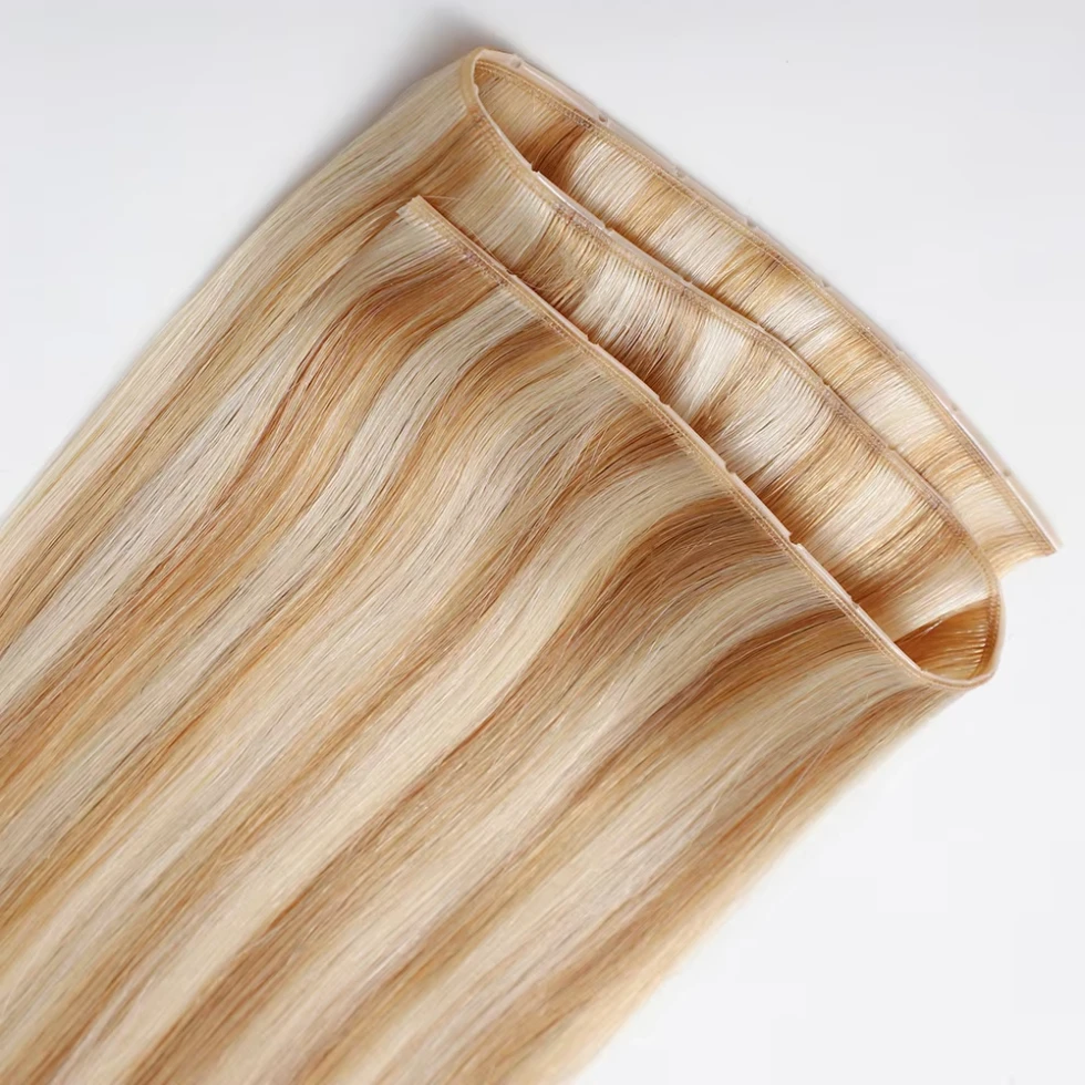 頭皮に優しい快適さ:極薄で羽毛のように軽い横糸が頭皮にぴったりと密着するため、ボリュームを褒められるまで、クライアントはエクステを付けていることを忘れてしまいます。