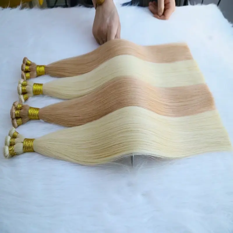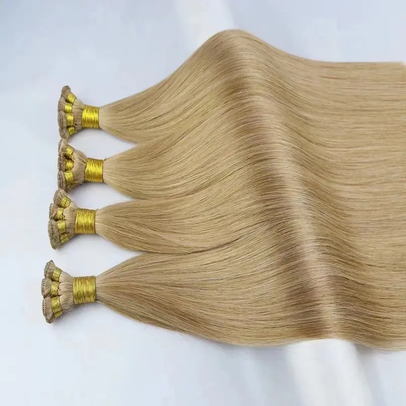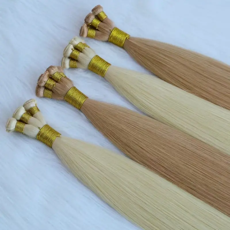 ハンドタイドヘアエクステンションは、熟練した職人によって一本一本の髪束が編み込まれて完全に手作業で作られています。これにより、最もスリムでシームレスな横糸が得られ、細い髪や細い髪を持つお客様に最適です。手織りのおかげで、横糸が頭皮に対して平らになり、自然で目立たない仕上がりになります。