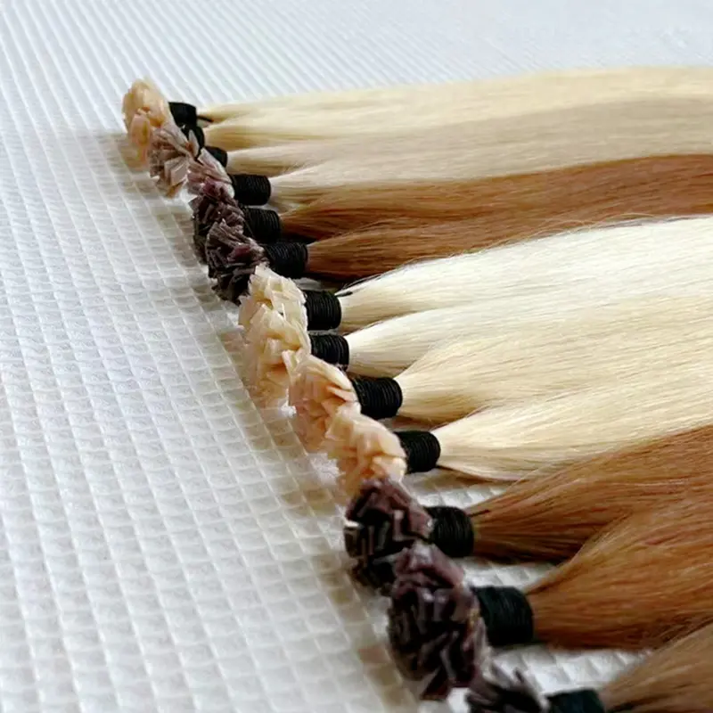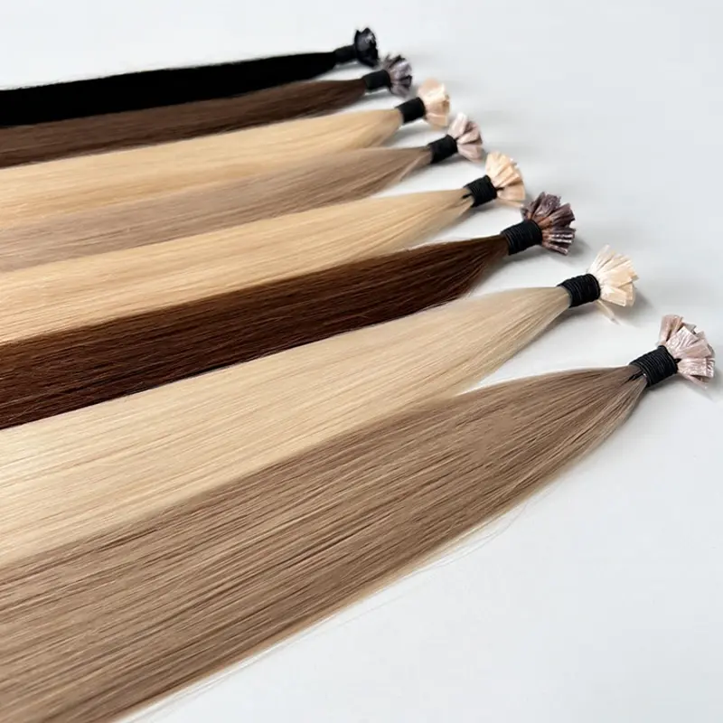 耐久性と縮れ耐性:中国の天然ケラチンヘアエクステンション工場で製造されたこれらのフラットチップエクステンションは、形状や品質を失うことなく、毎日のスタイリング洗浄や熱処理に耐えます。適切なケアを行えば数か月持続し、サロンとクライアントの両方に優れた ROI をもたらします。