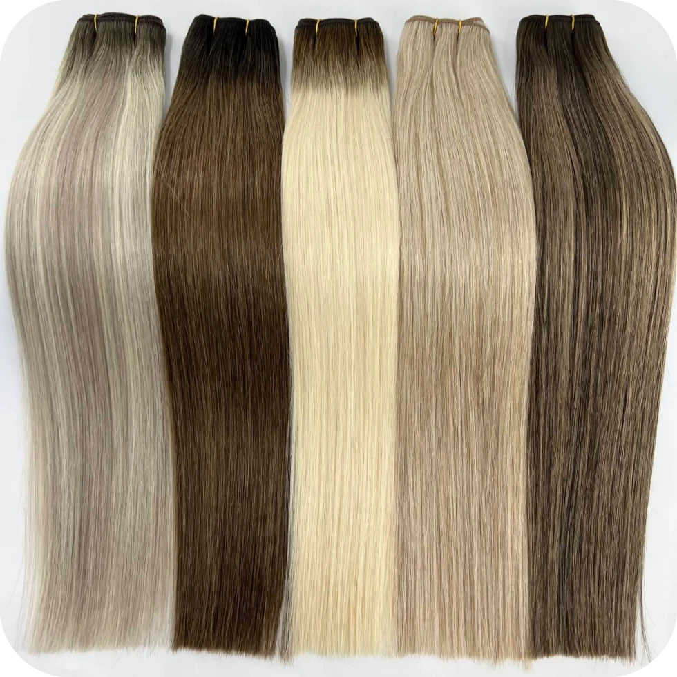 豊富なオプションと幅広い汎用性 当社のマシン横糸エクステンションには、あらゆる髪質に合うように複数の長さと 35 色のオプションがあります。ストレート、ウェーブ、カールなどのスタイルが可能で、カット、カラー、染色も簡単で、お客様の自然な髪に完璧にマッチします。