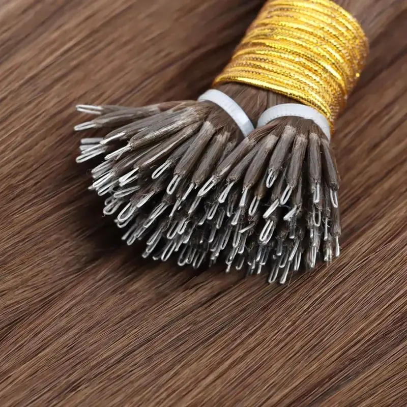 ナノ ビーズ ヘア エクステンションは、長期間着用できるように永久的にエクステンションを適用したい人に人気の選択肢です。この技術では、個々の髪束を小さなリングに固定します。ナノヘアの結合は非常に小さく、従来のマイクロリングよりも約 90% 小さいため、検出されず目立たず、自然にブレンドされた外観を実現します。ラムヘアーナノヘアーは髪が細くて薄い人にも使えます。 20インチと22インチの在庫がございます。